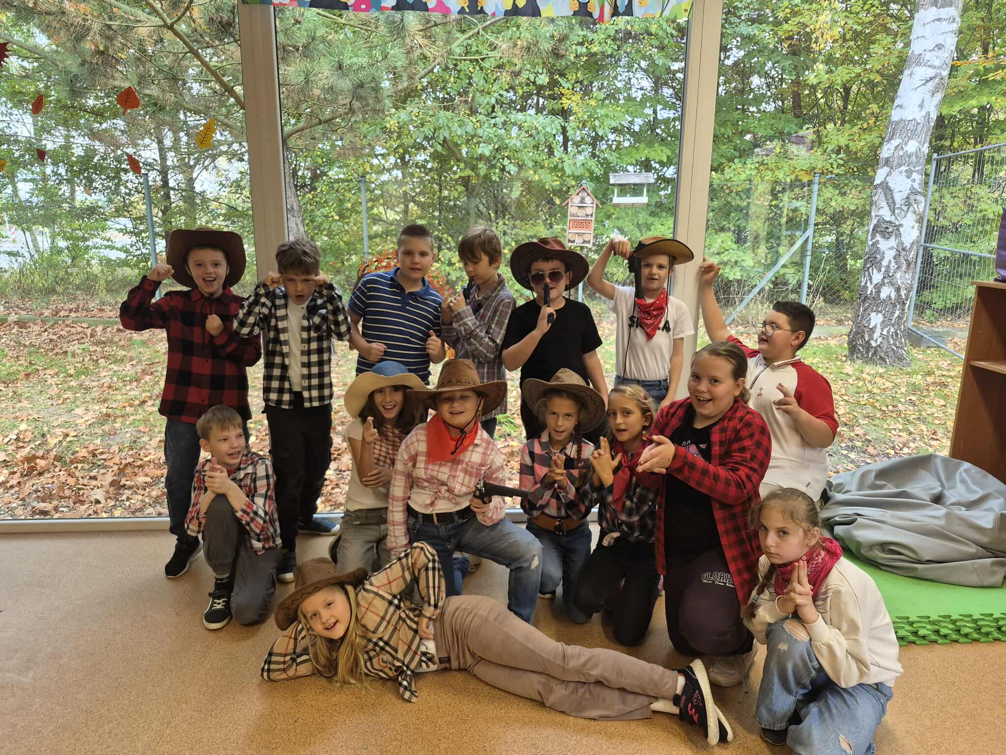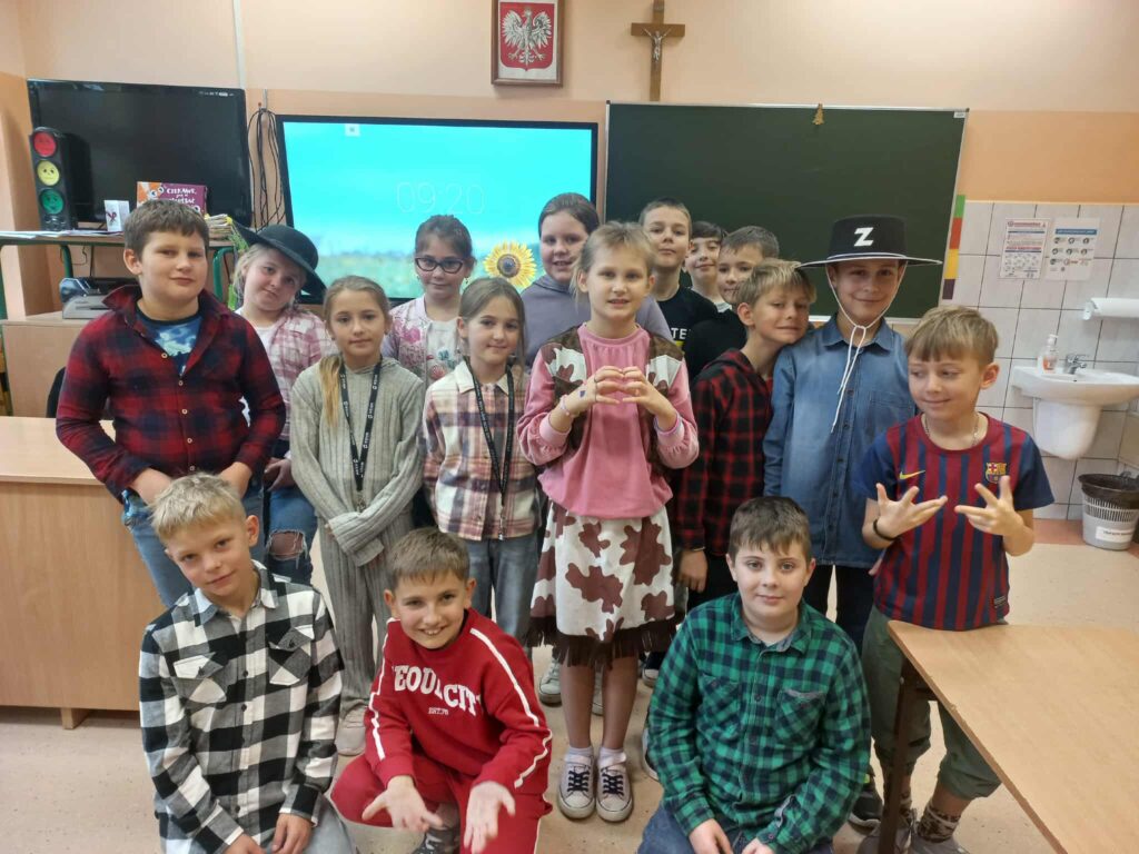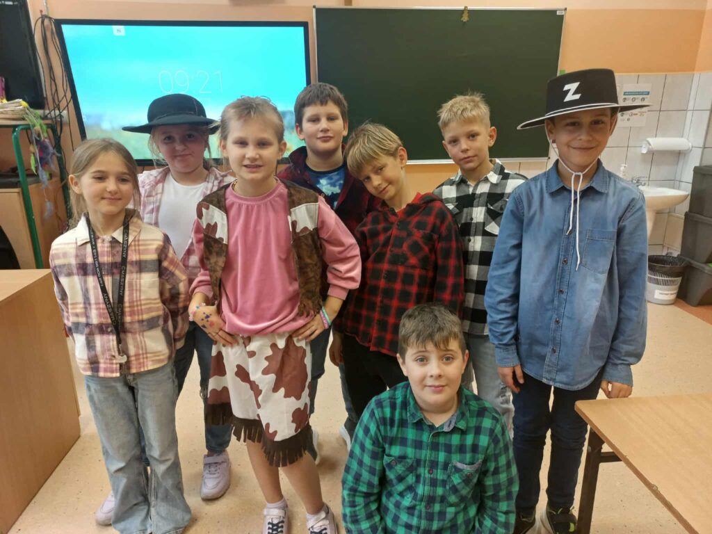 - Środa – Ameryka: szkolne korytarze zapełniły się kolorowymi strojami rodem z Dzikiego Zachodu – kraciaste koszule, jeansy i taniec w rytmie country wprowadziły atmosferę wspólnej zabawy i integracji.