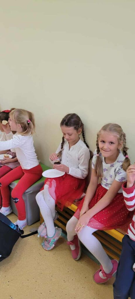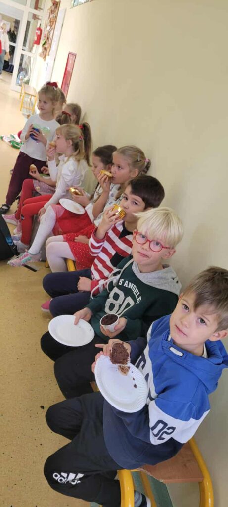 - Czwartek – Europa: w barwach biało-czerwonych uczniowie uczestniczyli w kiermaszu „Tost i babeczka – pomagamy z serca”, przygotowanym, by wesprzeć fundusz misyjny.