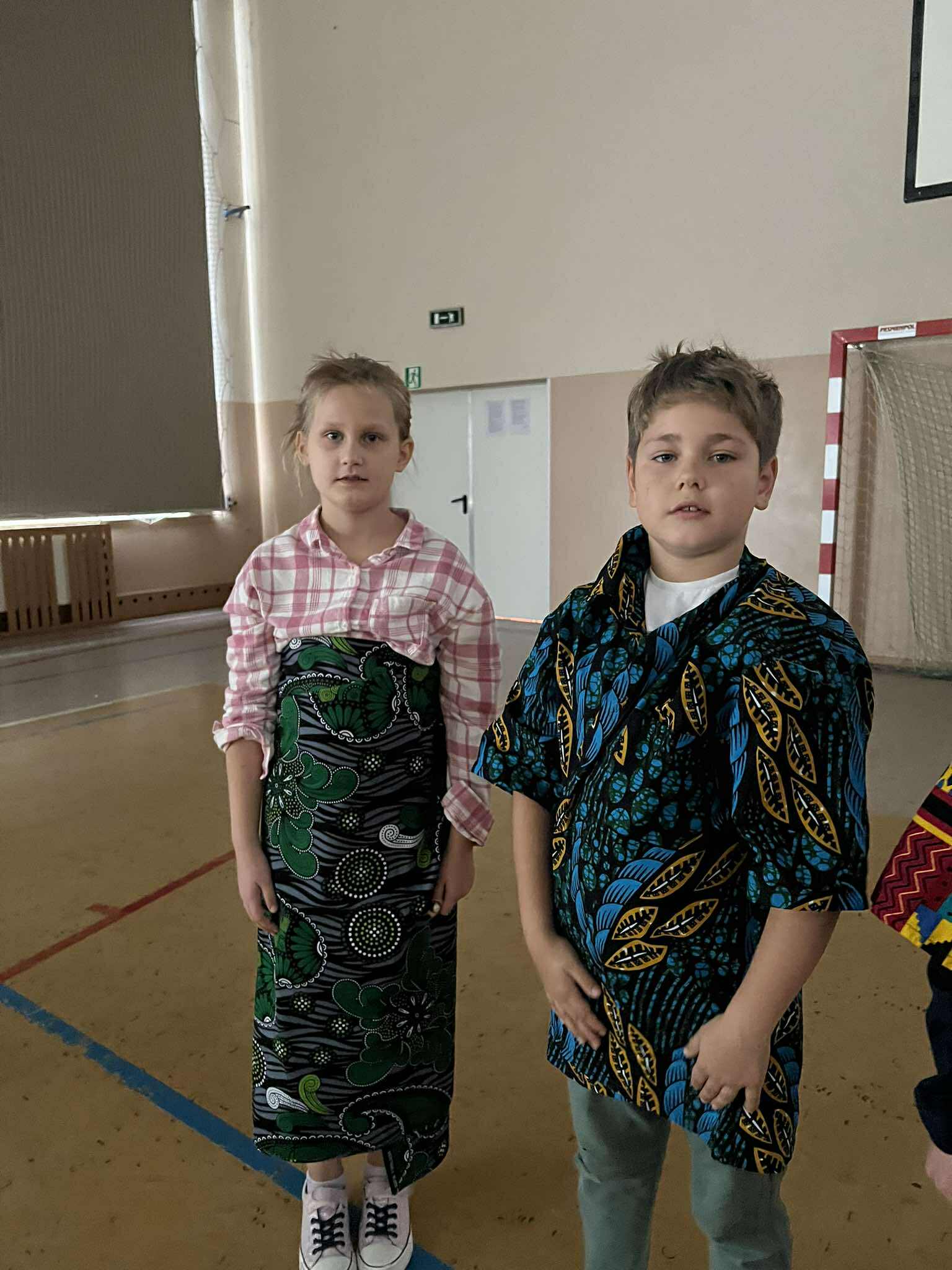 - Wtorek – Afryka: dominował kolor zielony. W rytm afrykańskich melodii, rozbrzmiewających na przerwach, odbyło się spotkanie z Marysią i Radkiem, którzy przybliżyli realia życia dzieci w Zambii i opowiedzieli o codzienności pracy misyjnej. Ich relacja była zarówno inspirująca, jak i głęboko poruszająca.