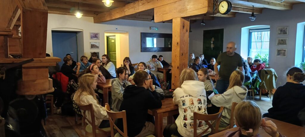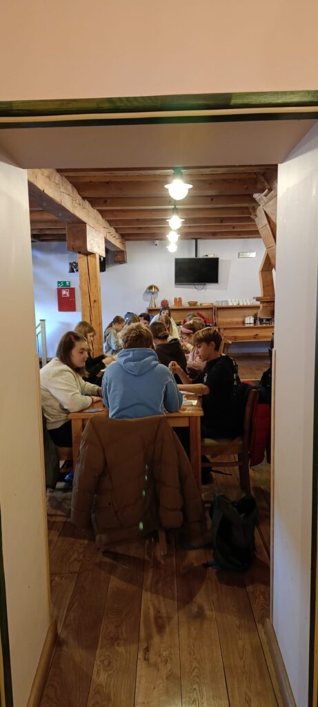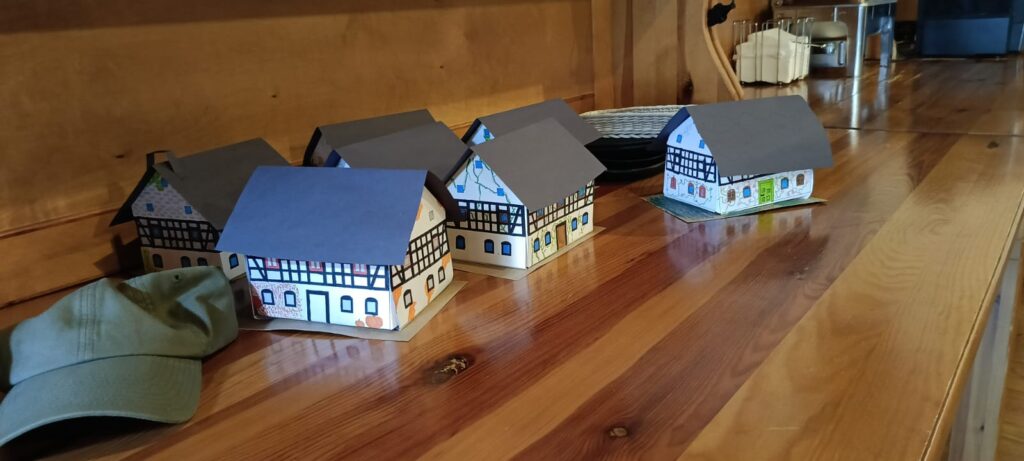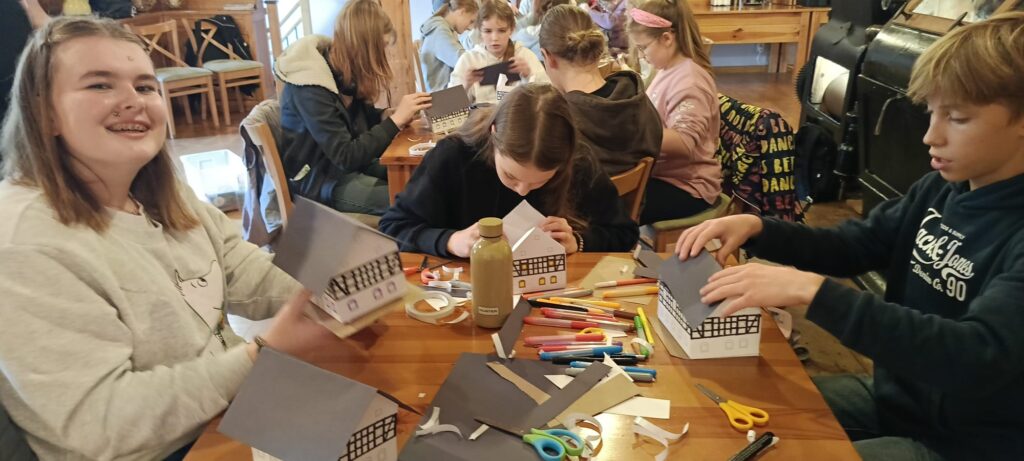 Następnie wzięliśmy udział w warsztatach Szachulcoew Love, prowadzonych przez Pana Roberta Maciąga, podczas których dowiedzieliśmy się wielu ciekawostek o sudeckich domach szachulcowych, jak dawniej je budowano, z jakich materiałów i dlaczego, niestety, niemal wszystkie są dziś ruiną. Zwieńczeniem warsztatów było wykonanie makiet takich domów.