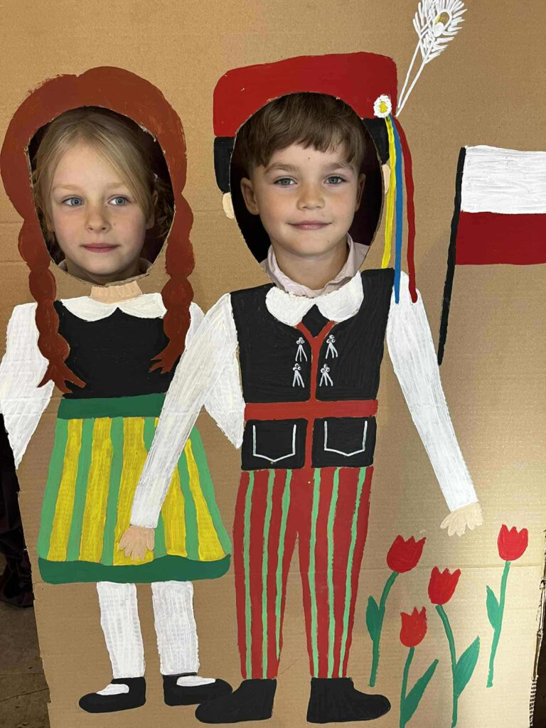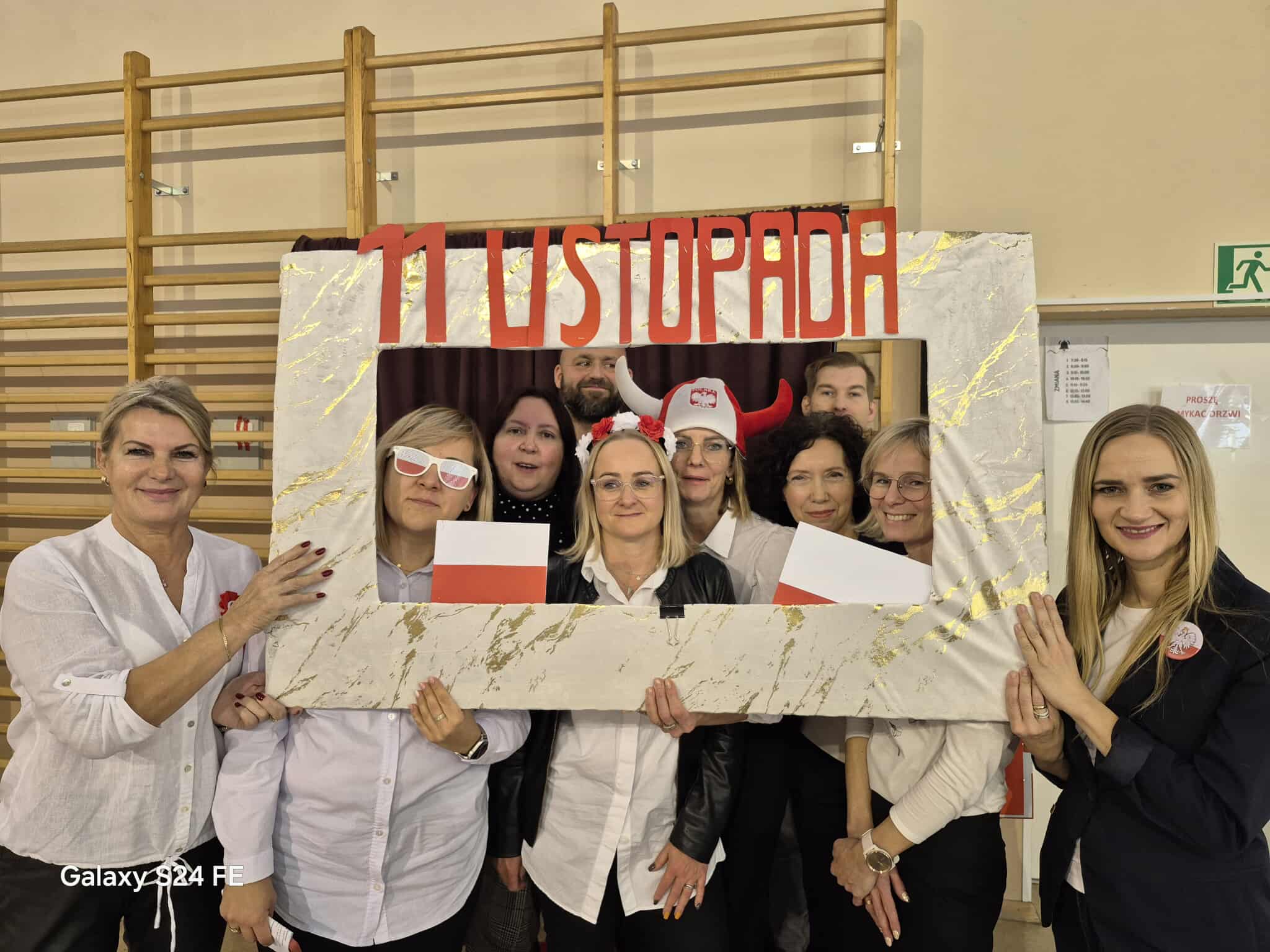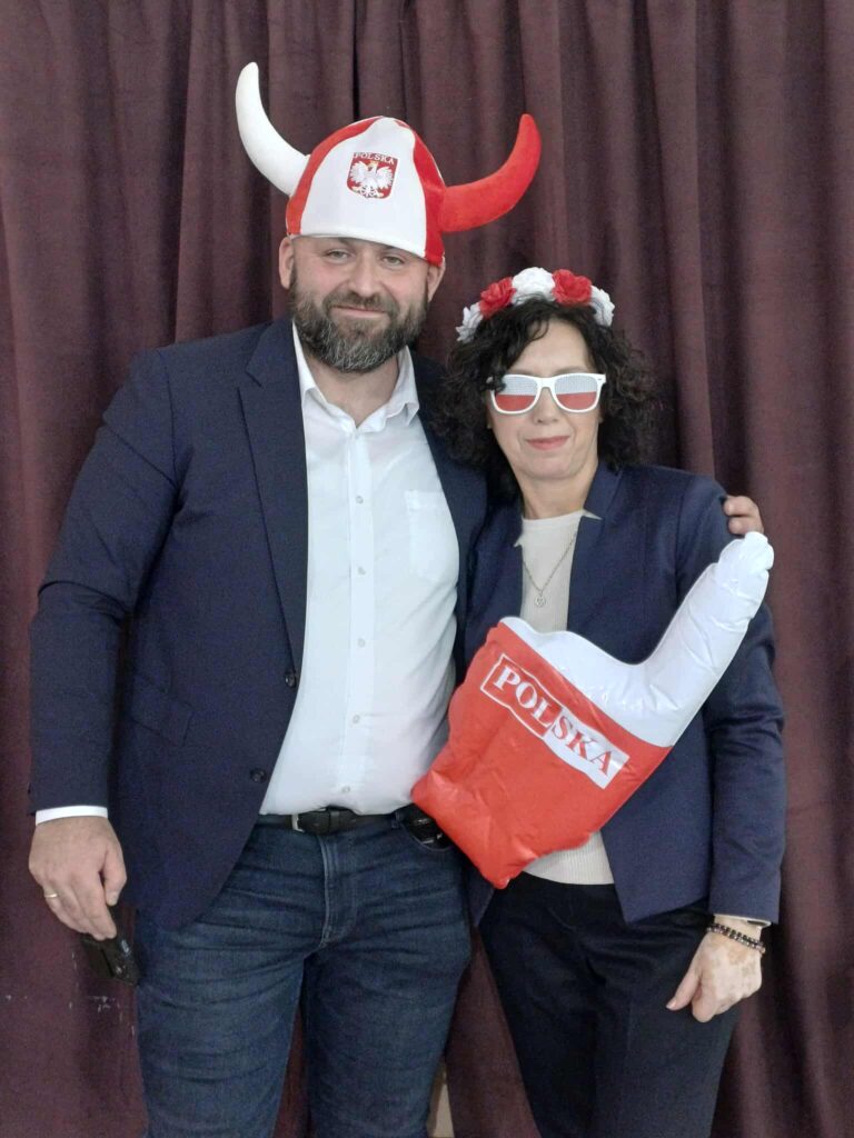 Samorząd Uczniowski przygotował patriotyczną fotobudkę, która stała się prawdziwym magnesem dla uczniów — zdjęcia pełne barw i uśmiechów tworzyły wyjątkowy klimat tego dnia.