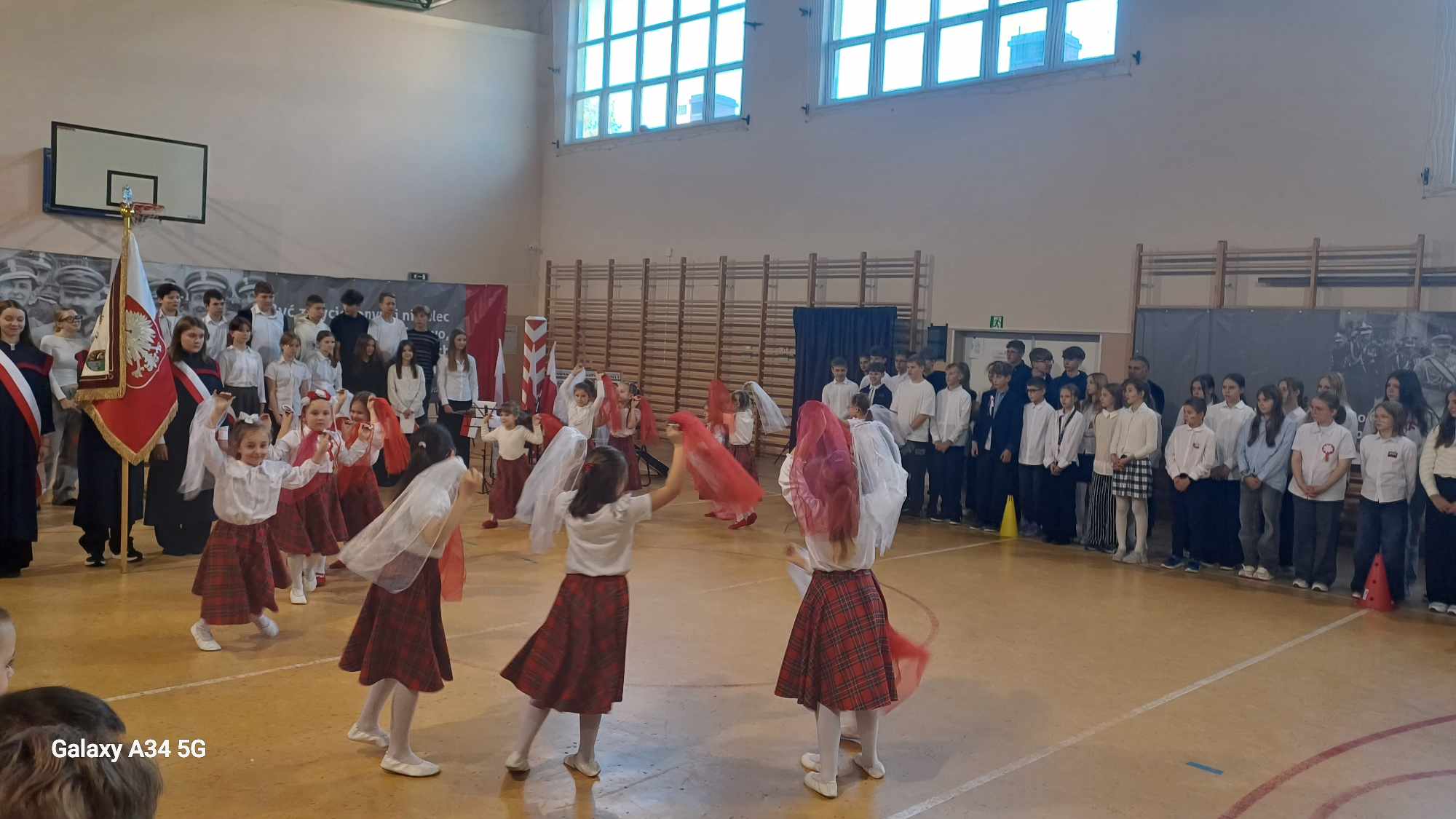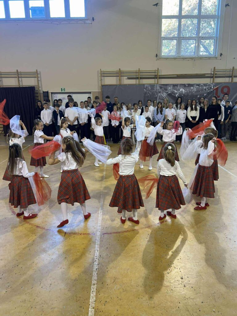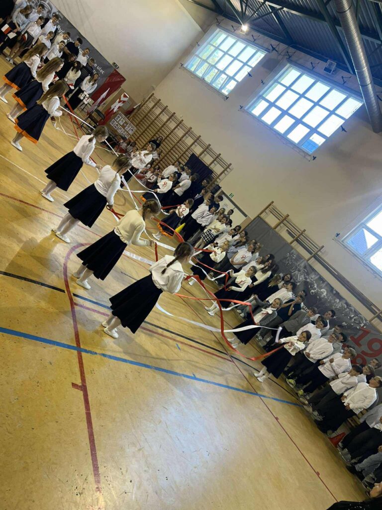 Najbardziej widowiskowym momentem akademii okazały się taneczne pokazy z biało-czerwonymi szarfami. Scenę rozświetliły pełne wdzięku choreografie trzecioklasistek oraz… uroczych pierwszoklasistek, których energia i radość poruszyły całą publiczność.